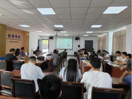 活动中,公司副教授刘华介绍了《概率论》课程思政建设情况,该课程结合概率论知识图谱、问题图谱和思政图谱,围绕数学文化史、概率原理等主线挖掘思政元素,将马克思主义立场观点方法教育与科学精神培养相融合,在专业建设、课程建设、教研项目、学科竞赛等方面取得多项成果。陈涛就课程建设情况进行了具体指导。李洁对共建活动进行了点评。