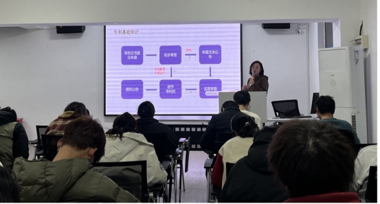 张姗姗以《专利那些事》为题,从实用维度拆解专利的“底层逻辑”。她梳理发明、实用新型、外观设计三类专利及申请全流程,明确“新颖性、创造性、实用性”三大授权核心条件,并结合实际案例规避申请误区;最后她着重强调了专利的学业与就业价值,指出专利既是考研复试中证明科研潜力的有力材料,也是求职竞争中体现技术能力的“硬核武器”,鼓励师生积极将科研成果转化为个人发展的竞争力。