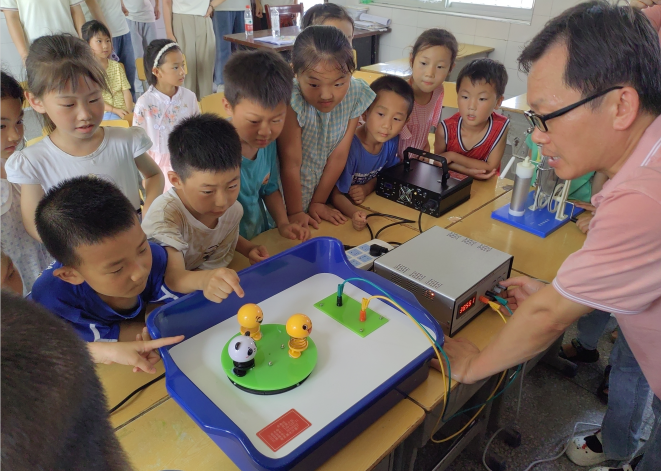 课堂上,同学们手摇发电机通过运转闪烁出细微亮眼的电光;变幻莫测的激光投影仪收到孩子们的注目礼;静电起电机使纸条缓缓悬浮在空中;共振小娃在不同频率下夸张舞动。员工们专心聆听老师的讲解,形式新颖的课堂吸引着每个员工的目光,充分让员工感受到了科学的奇妙。
