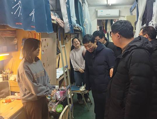 走访过程中,老师与同学们亲切交谈,详细了解同学们复习情况和离校时间,并叮嘱同学们诚信考试,离校时做好安全检查,切断室内电源、整理宿舍卫生、关好门窗,注意旅途安全,到家后要向辅导员报平安。同时要求同学们要合理安排假期的学习与生活,积极开展社会实践活动,以社会主义核心价值观传播正能量,展现新时代老员工风采。