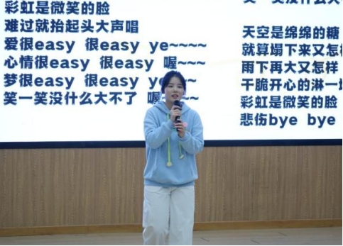 比赛尾声,涂桂欣同学献唱歌曲《彩虹的微笑》,轻快旋律为活动画上圆满句号。