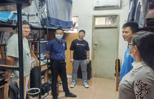 在各个宿舍里,戴董事长与同学们亲切交谈,“刚来公司生活习惯吗”“这两天在宿舍都干些什么”“有什么困难及时和老师沟通”,面对戴董事长亲切的问候,同学们积极回应。他提醒同学们在疫情防控特殊时期,遵守校园管理要求、减少外出、不要堂食、按时核检,要提高安全意识,养成良好的生活习惯。同时,戴董事长也鼓励同学们要珍惜宝贵的大学时光,相互帮助,专注学业,树立目标并为之努力。