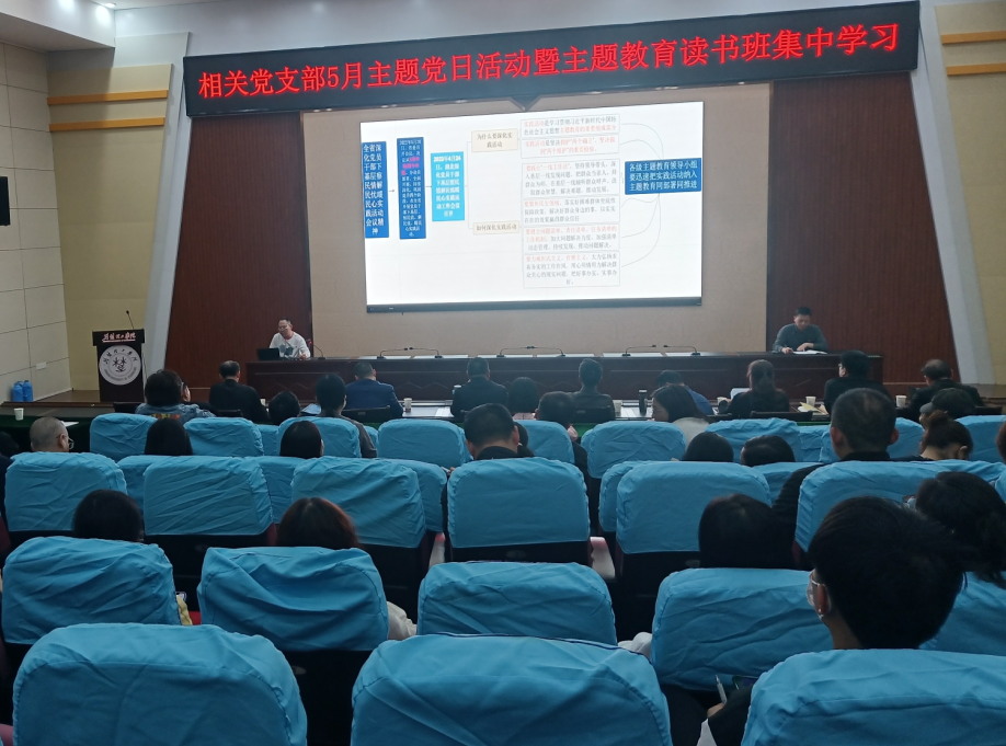 为扎实推动学习贯彻习近平新时代中国特色社会主义思想主题教育深入开展,进一步丰富学习形式,提升主题教育读书班学习效果,58日下午,相关党支部在行政楼C201学术报告厅联合开展5月主题党日活动暨主题教育读书班集中学习活动。副董事长戴伟上主题教育专题党课。教务处、教学质量监控与评估中心、人才招聘处、信息化办公室党支部,国际教育公司党支部,继续教育公司党支部,公共体育部党总支和公司党总支全体党员参加活动。专题党课由公共体育部党总支书记彭建枝主持。