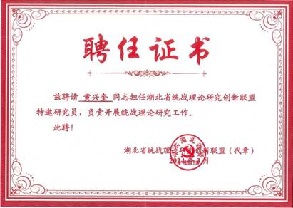 bevictor伟德教师黄兴奎被湖北省统战理论研究创新联盟聘为特邀研究员。黄兴奎教授在2023年12月被聘为荆门市统战理论研究会专家库成员后,此次聘任不仅是对其在统战理论和实际问题研究工作中所做贡献的认可,也是对其专业素养和学术实力的肯定,有助于推动公司统战理论研究进一步创新和发展。