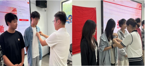 在庄重的党员徽章佩戴仪式中,韩涛、周娅两位书记亲手为预备党员佩戴象征责任与使命的党员徽章。面对鲜红党旗,全体预备党员高举右拳,以铿锵有力的誓言许下对党和人民的庄严承诺。闪耀的党员徽章与铮铮誓词交织,让每位学员深刻体会到共产党员的光荣使命。
