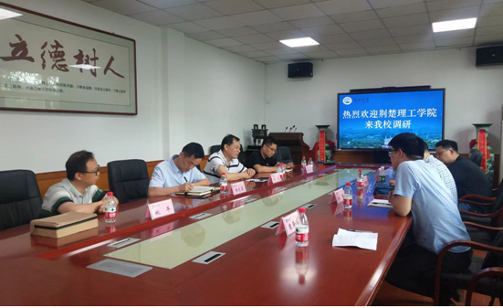 上午,考察组来到三峡大学理公司,经理郑胜热情接待了考察组一行。考察组先参观了三峡大学物理实验示范中心,详细了解实验项目设置、实验室管理运行等情况,随后双方举行座谈会,就大学物理实验室建设和管理、学科和专业建设、科学研究和人才引进、硕士研究生联合培养、硕士研究生导师互聘等方面进行了深入探讨和交流,并达成了硕士研究生联合培养的初步意向。座谈会后,三峡大学副董事长主悔亲切接见了考察组一行。